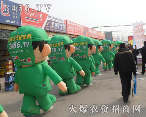 姿態(tài)威武的綠色卡通氣模寶寶們成為2013年黑莊農(nóng)資會上的一大亮點(diǎn),誰見了都有上去摸一下的沖動。這也是我們火爆農(nóng)資招商網(wǎng)的推廣的一大亮點(diǎn)。